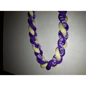 This is for a brand new 20" Ionic braided titanium baseball/softball necklace. This one is Purple and Yellow and comes w/ plastic packaging. Lots of MLB players wear similar necklaces and they are supposed to help w/ balancing energy, reducing fatigue, and speeding recovery. We have 30 different colors available - all 20" long.